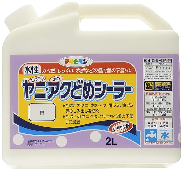 アサヒペン 塗料 ペンキ ヤニ・アクどめシーラー 2L 白 水性 室内 下塗り用 艶消し 1回塗り シックハウス対策品 日本製