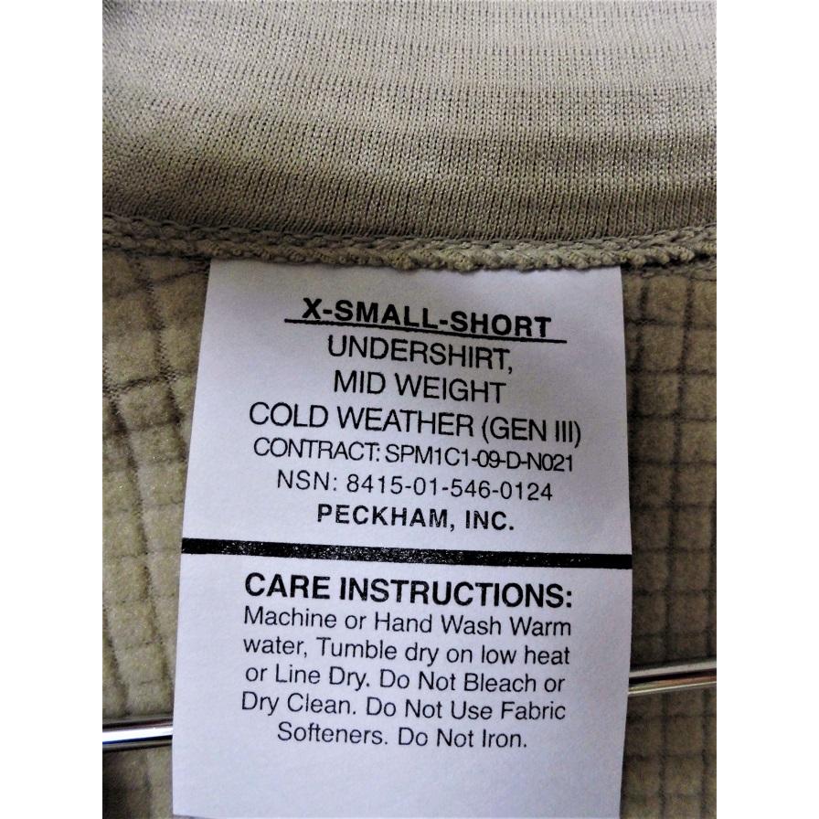米軍実用のGEN3プルオーバーフリースです。 POWER DRYグリッドを素材に用いているため、軽量でレイヤリングした際の保温性、伸縮性にも優れているアイテムです。 耐久性にも優れており長くお使いいただけ、また、ライトウェイト化が進んでいるためかさばらないという、非常に使い勝手の良いアイテムです。 レプリカではない本物の放出モデルの新品でこの価格! 普段はUS.Sサイズの方も、インナー用途でしたら着ていただけるサイズ感かと思います。 新品 TAN US.XS-Regular=着丈:(後ろ)約75cm, 身幅:約47cm, 肩幅:約45cm, 袖丈:約63.5cm *メーカーはKCARCとPECKHAMが混在しており、POLARTECのタグはあったりなかったり。 また、納入年度、タグのデザイン、数、種類等が個体により異なる場合がございますが、いずれかをお選びすることは出来かねます。 GEN3にもよく見られるようなタグの茶ばみやシミが発生している場合がございます。 また、オリジナル以外のパッケージに入れ替える場合がございます。 PECKHAMのタグはXS-Shortの物を流用しておりますが、現物はXS-Regularのみでの入荷となっております。