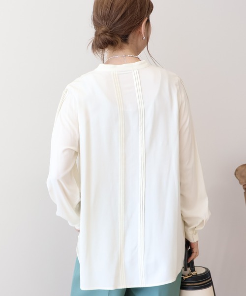 キーワード:ブラウス シャツ レディース ノーカラー 長袖 無地 冷感 お花見 ナチュラル ノームコア ピクニック レジャー ベーシック 春 旅行