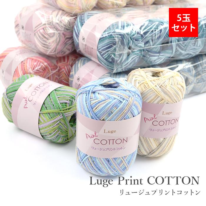 リュージュプリントコットン 5玉セットコットン100%のサマーヤーン。春夏用のサマーセーターやベストにぴったりです。【仕立】25g玉巻(約80m)【素材】綿100%【使用針】棒針4号〜5号 かぎ針4/0号〜5/0号【注意事項】・WEBの性質上、パソコンの設定や環境で実際の商品とカラーが若干異なる場合がございます。・製造上の都合、糸に1〜2箇所結び目が生じる場合がございます。・一度にご注文いただいた商品は同じロットでお届けします。