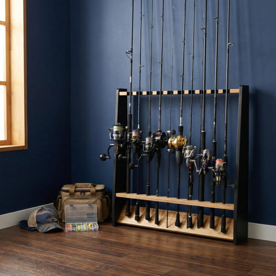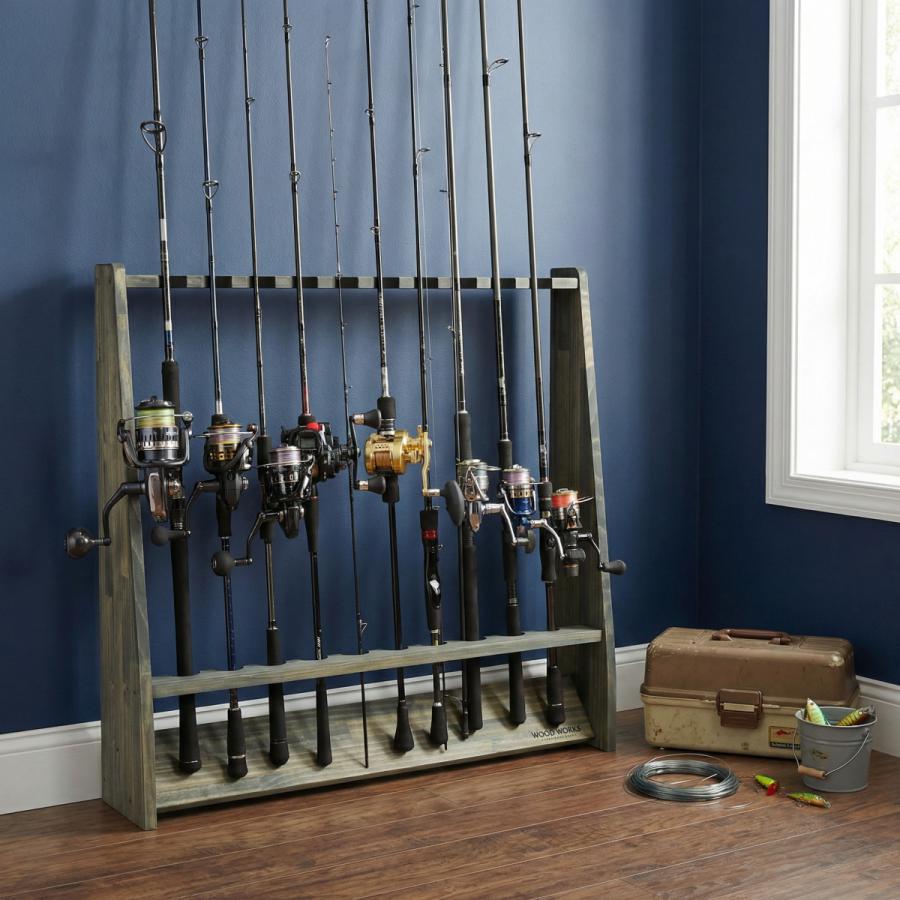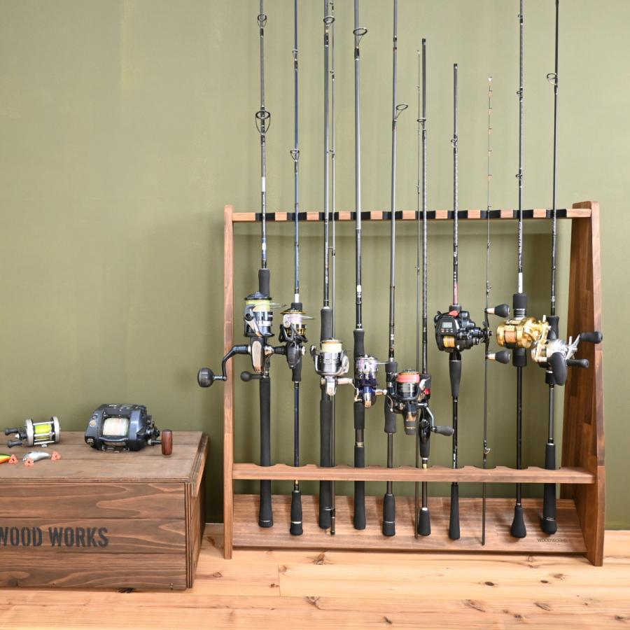 WOOD WORKS 木製ロッドスタンド 船竿・太竿・2ピース用です。