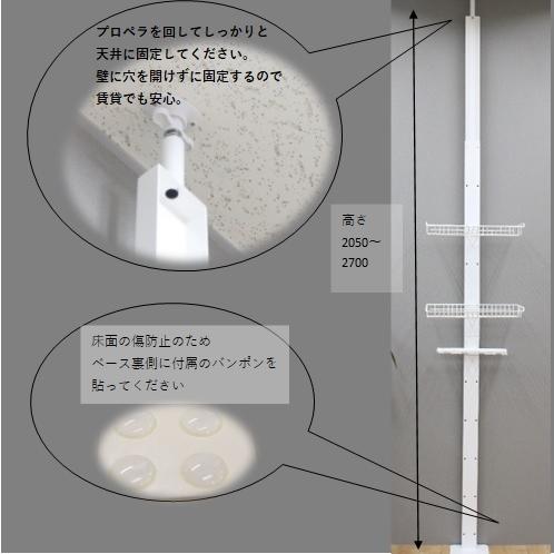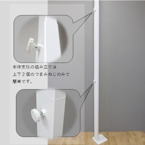 設置サイズ:幅42*奥行29*高さ205~270cm材質:スチール色 :白色/黒色 粉体塗装重量:8.3kg梱包サイズ:幅107*奥行25*高さ20cm組立:必要