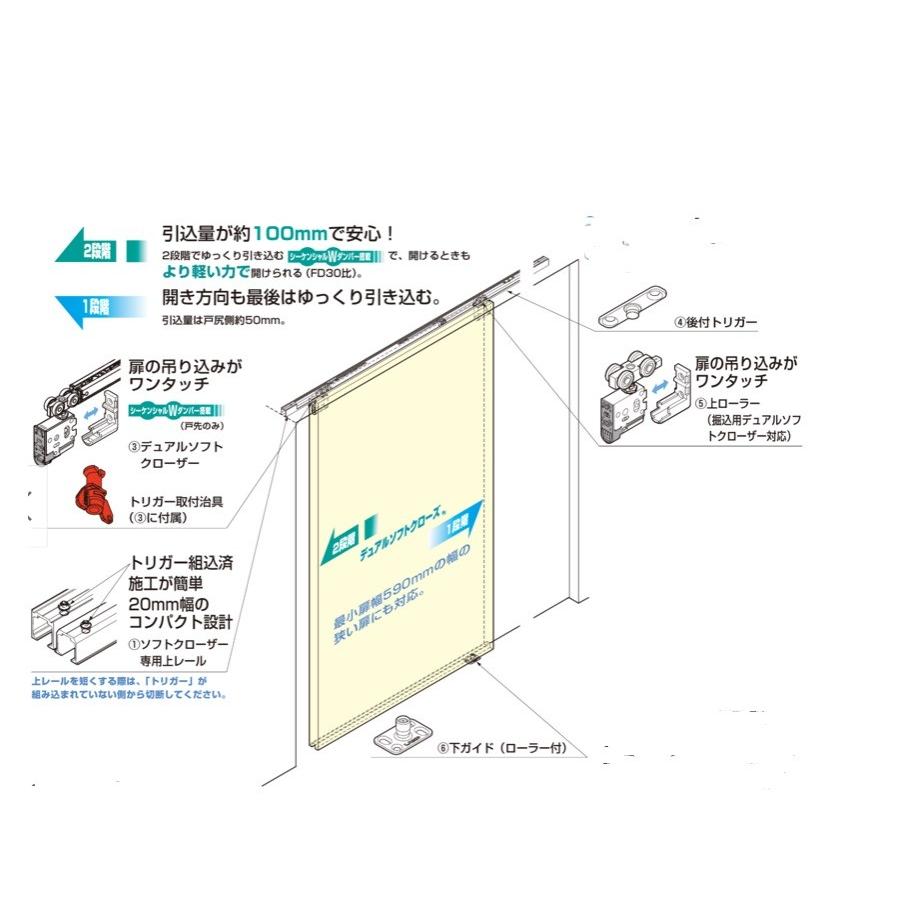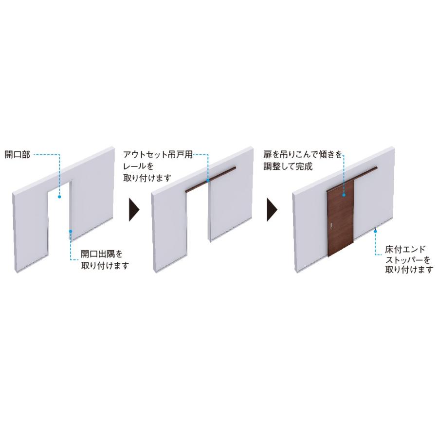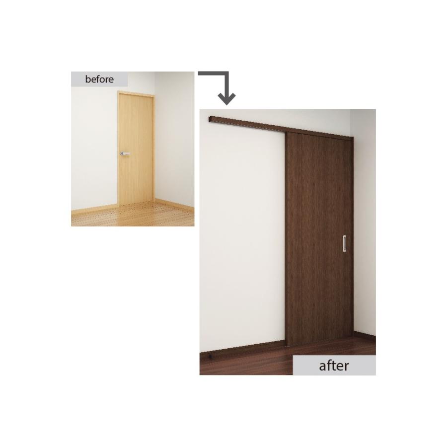 枠はそのままで開きドア〜吊り戸引き戸に変更上部吊り車が戸の木口に付くため、戸を閉めたとき、どちら側からも見えず、すっきりした仕上がりが期待できます。 引き戸 上吊式引戸 ソフトクローズ クローズ ゆっくり閉まる 吊戸 油圧 間仕切り アルミレール 扉を2段階でゆっくりと引き込む引戸クローザー仕様静かで安心な”ケーシンシャルWダンパー搭載 アウトセット【2700・3600も有りお問い合わせ下さい】金物取付加工込み
