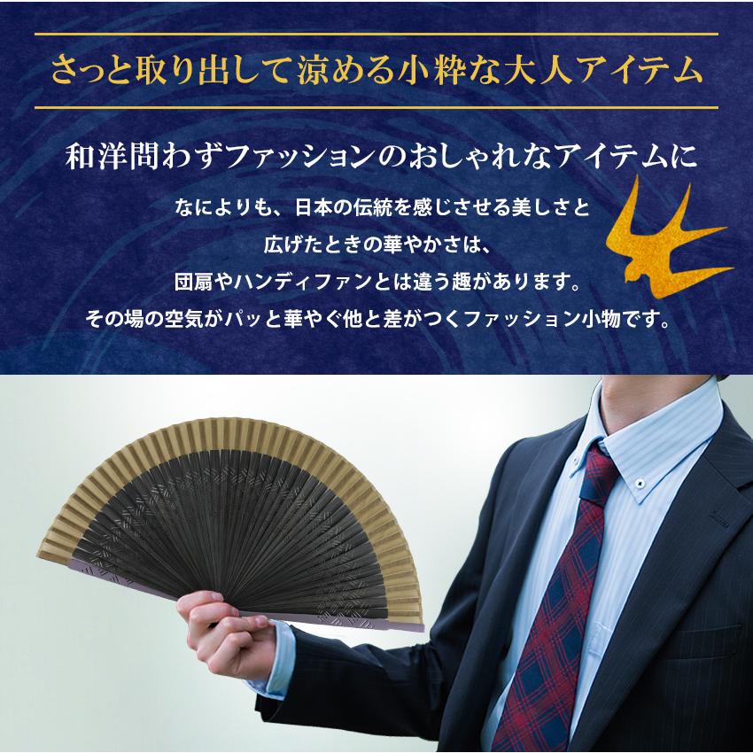 カラー:紺・カーキ種別:男性用、紳士用 夏扇子、扇子袋セット扇面:綿70% シルク30%扇骨:竹扇子袋:ポリエステル100%扇子を広げた時の大きさ(縦×横):約22×40cm箱(縦×横×高さ):紙箱 約10.5×26.5×2.5cm袋の長さ:約22cm