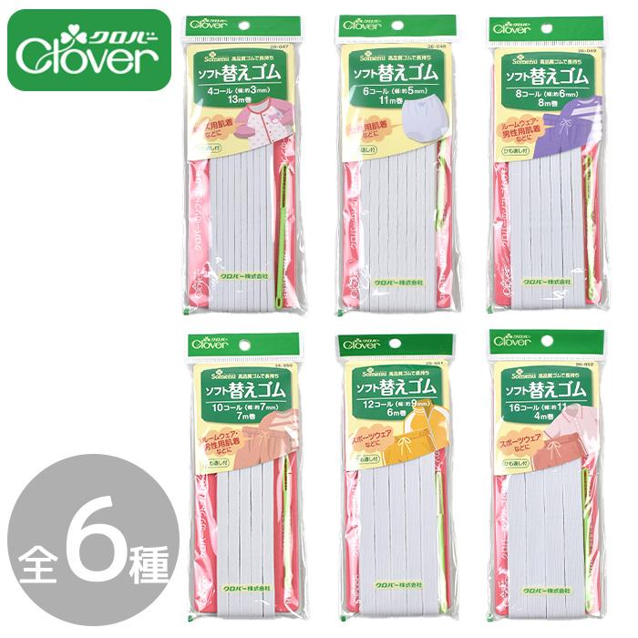 Clover クロバーソフト替えゴム 全6種#ゆうパケ10点可丈夫で伸縮性にすぐれた高品質のゴム紐。子どもから成人用の肌着や、ルームウェア、スポーツウェアなどにお使いいただける便利な替えゴムです。