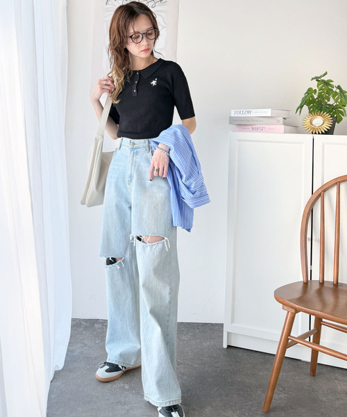 キーワード:ポロシャツ ポロ レディース ビジュー ワンポイント 刺繍 半袖 無地 WEB限定 カレッジ トラッド ピクニック レジャー プレッピー 春 新生活 定番