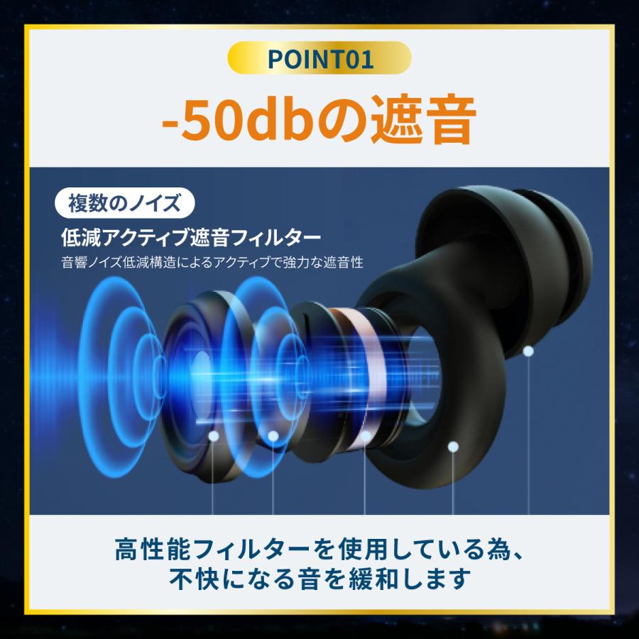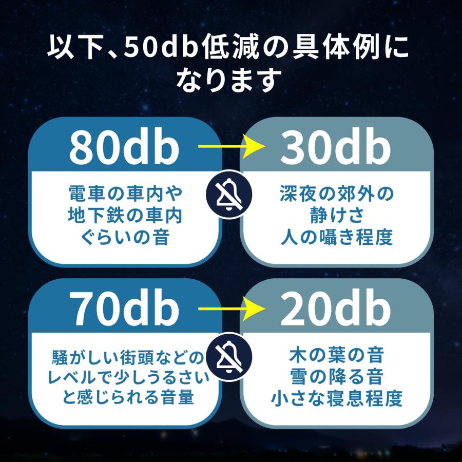 -50dBのノイズ低減効果があり遮音性が高くて、ほとんどの騒音を遮断できストレスにならず快適な睡眠ができます。
