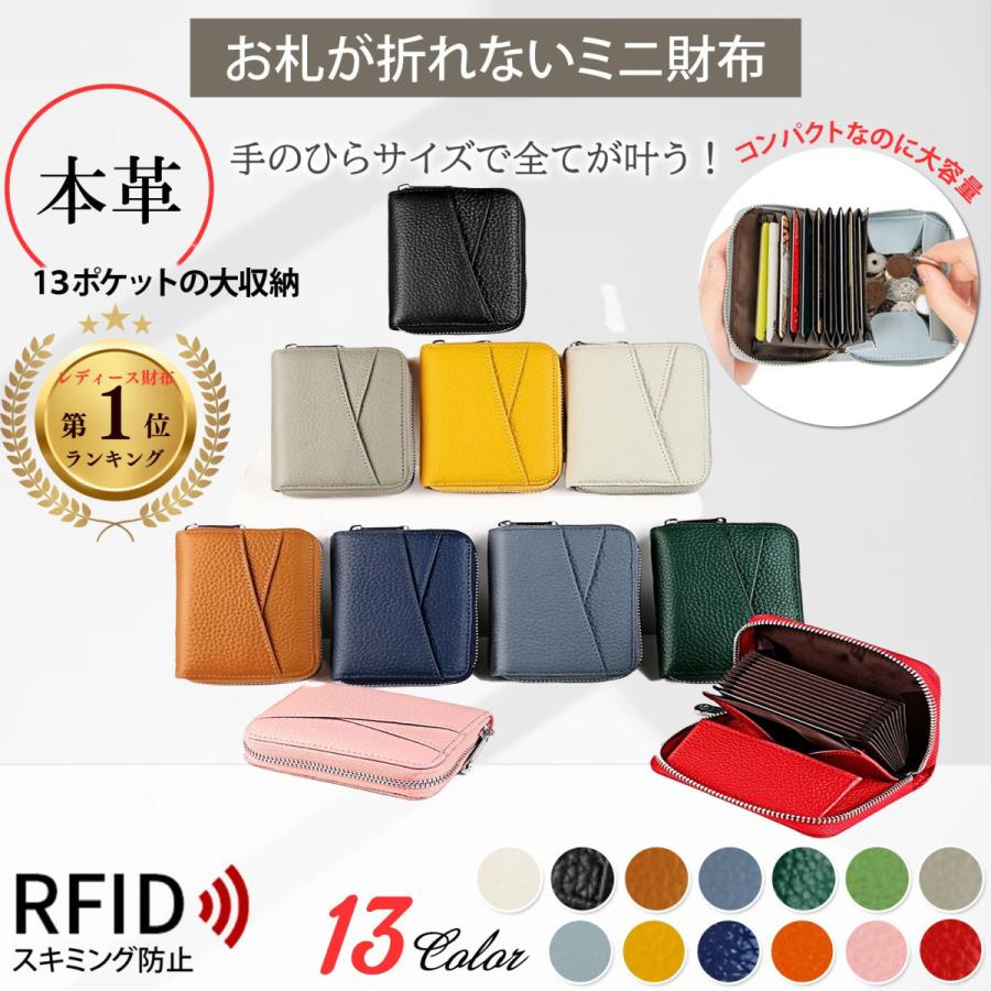 財布 レディース 本革 二つ折り 薄い 軽い 小さめスキミング防止 多機能 大容量