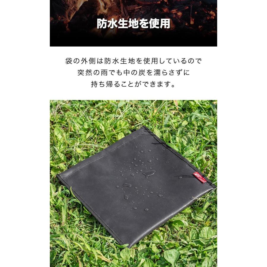 袋の外側は防水生地を使用しているので突然の雨でも中の炭を濡らさずに持ち帰ることができます。