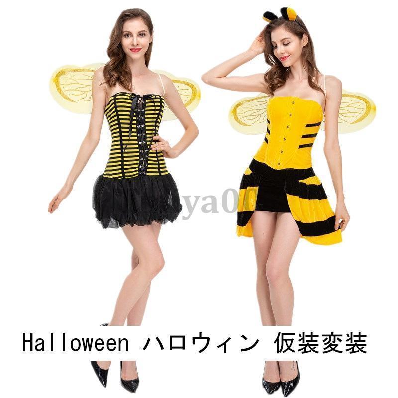 只今底値!ハロウィン 蜜蜂 妖精 コスプレ ハチ コスチューム みつばち 仮装 コスチューム 衣装 bee ミツバチ 蜂 ビー 虫 羽 イエロー レディース 大人 翼付き