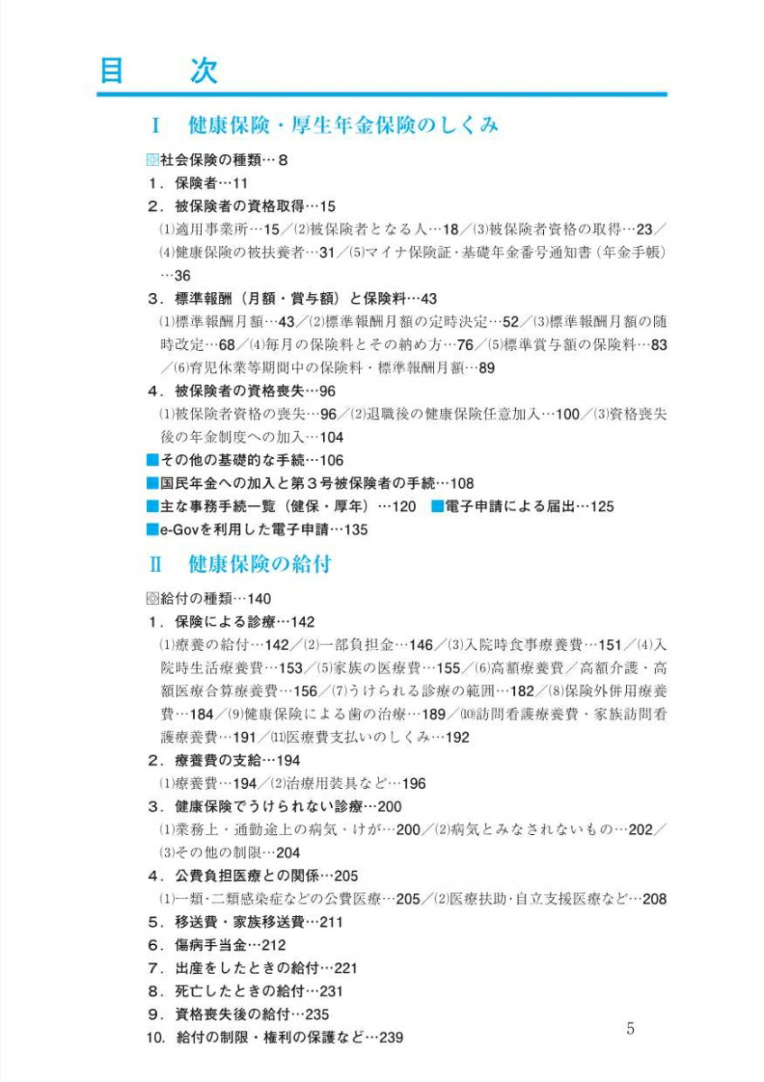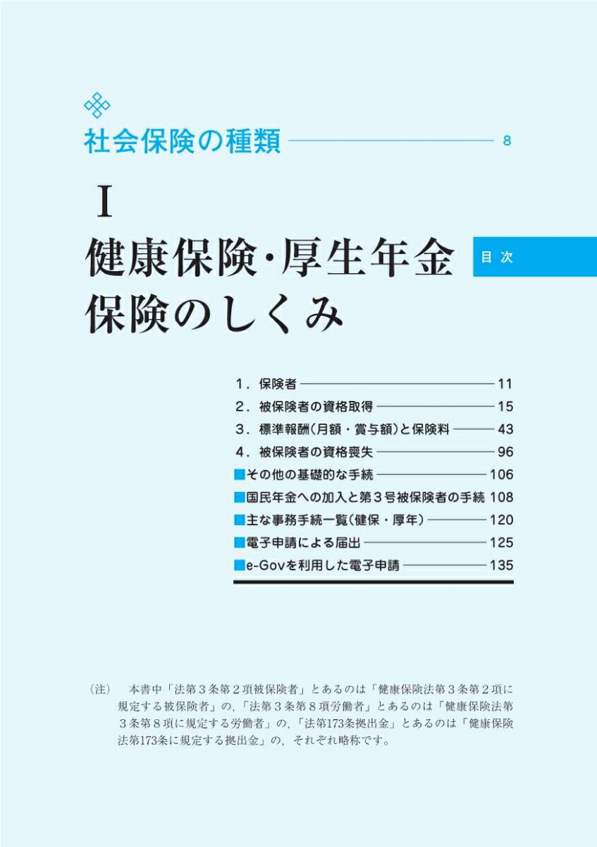 ◆健康保険・厚生年金保険を中心に社会保険のしくみと給付をくわしく、初心者でもわかるように解説した入門書です。◆健康保険の給付と年金給付(老齢給付・障害給付・遺族給付)をていねいに解説しました。1健康保険・厚生年金保険のしくみ1.保険者2.被保険者の資格取得3.標準報酬(月額・賞与額)と保険料4.被保険者の資格喪失■その他の基礎的な手続■国民年金への加入と第3号被保険者の手続■主な事務手続き一覧■電子申請による届出■e-Govを利用した電子申請2健康保険の給付1. 保険による診療2.療養費の支給3.健康保険でうけられない診療4.公費負担医療との関係5.移送費・家族移送費6.傷病手当金7.出産をしたときの給付8.死亡したときの給付9.資格喪失後の給付10.給付の制限・権利の保護など11. 自動車事故と社会保険12.法第3条第2項被保険者のしくみ13.法第3条第2項被保険者の給付■特定健康診査・特定保健指導の実施国民健康保険/退職者医療制度/後期高齢者医療制度/介護保険1. 国民健康保険の要点2.退職者医療制度の要点3.後期高齢者医療制度の要点4.介護保険の要点3年金給付1.基礎年金・厚生年金給付の種類と通則的事項2.老齢給付3.障害給付4.遺族給付5.旧法による年金6.併給の調整など7.未支給の給付など8.複数種別の厚年期間があるとき9.企業年金10.旧公企体・農林共済組合員の経過措置11.年金受給者への融資事業12.年金生活者支援給付金児童手当/労働保険/年金委員・健康保険委員■日本年金機構・年金事務所・事務センター一覧■全国健康保険協会本部・支部一覧■街角の年金相談センター一覧■年金に関する電話での問い合わせ■地方厚生(支)局一覧