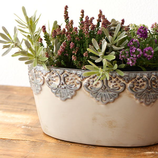 æ¤æœ¨é‰¢ プランター ãŠã—ゃれ 楕円形 連鉢 フレンãƒã‚·ãƒ«ãƒãƒ¼ãƒ–リ゠オーãƒãƒ«M