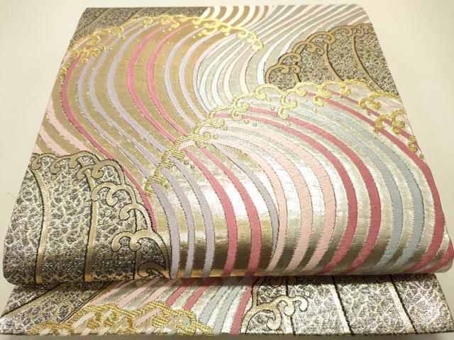 平和屋着物◎佐賀錦 六通柄袋帯 立波文 金銀糸 正絹 逸品 DAAS9671zy