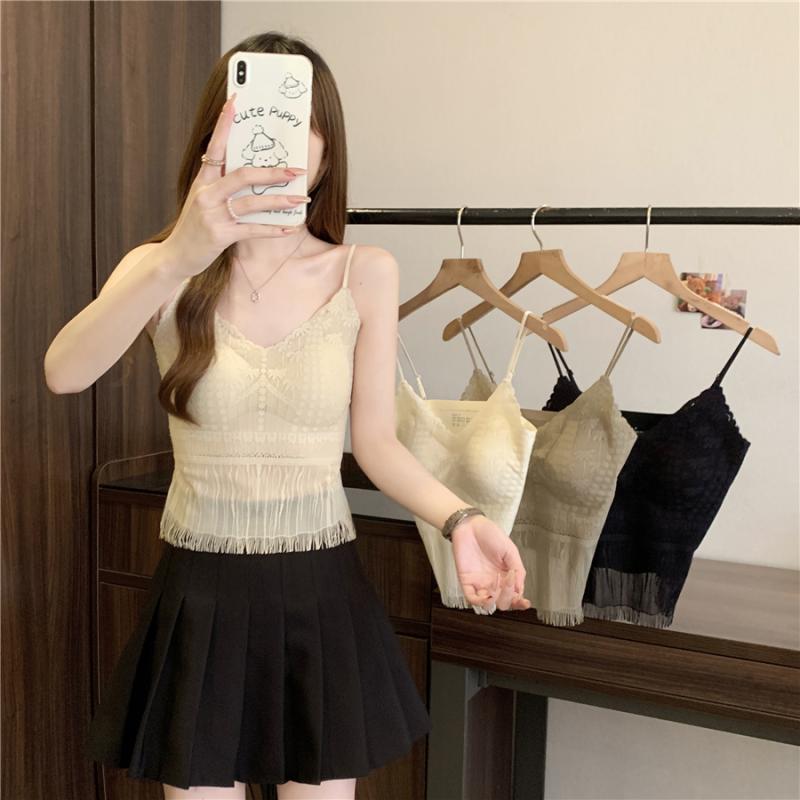 ã‚ャミソール ショート丈 レディース フリンジ Vãƒãƒƒã‚¯ é€ã‘感 ãŠã—ゃれ å¤ æ™®æ®µä½¿ã„ ãŠå‡ºã‹ã‘ レジャー 旅行 カジュアル レース 薄手 プルオーãƒãƒ¼ é»’ ベージュ ç·‘