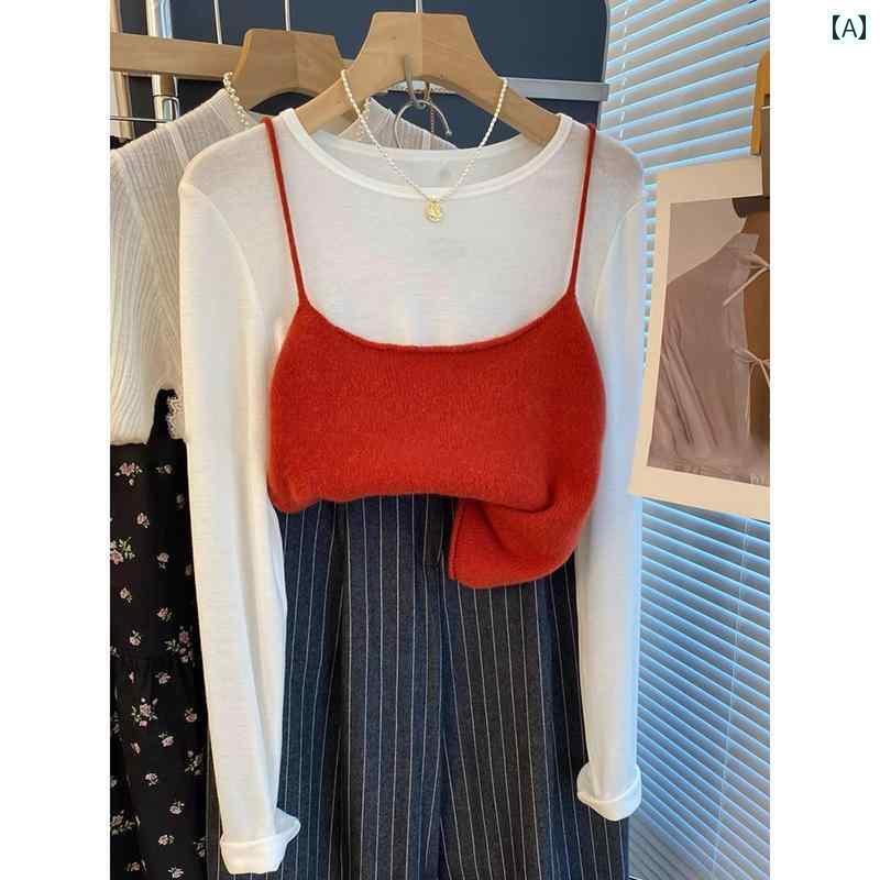 レディース トップス ã‹ã‚ã„ã„ 2025 ç§‹ レイ ヤード ショート セーター サスペンダー スモール ベスト 女性 アンコラ レッド ニット トップ