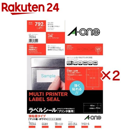 エーワン ラベルシール å¼·ç²˜ç€ 44é¢ 48.3×25.4mm 78244(18シート入×2セット)ã€ã‚¨ãƒ¼ãƒ¯ãƒ³ã€‘