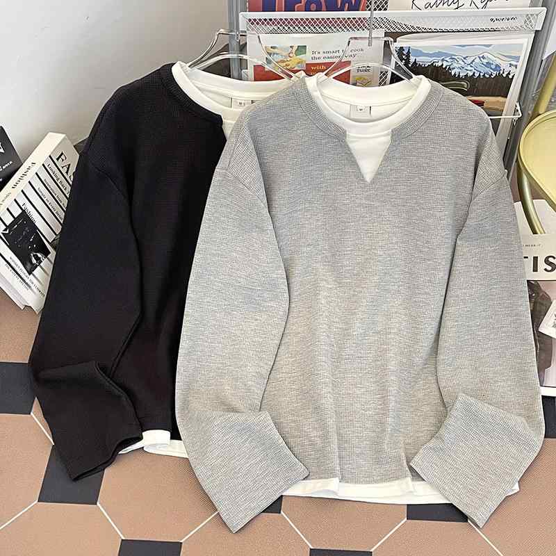 Tシャツ メンズ 長袖 Vãƒãƒƒã‚¯ トレーナー グレー系 ãƒãƒªã‚¨ã‚¹ãƒ†ãƒ« 秋冬 トップス プルオーãƒãƒ¼ カットソー スãƒãƒ¼ãƒ†ã‚£ãƒ¼ カジュアル
