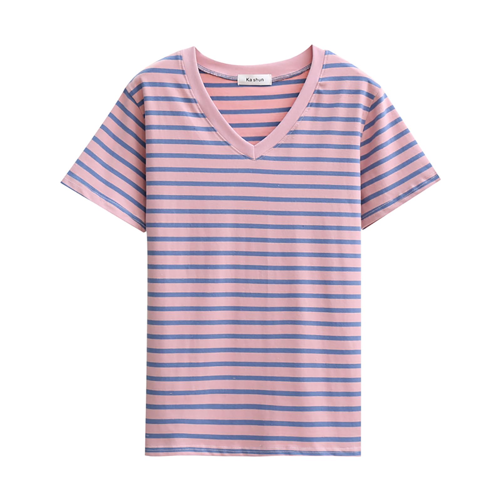 ã€é€æ–™ç„¡æ–™ã€‘[zuevichn] レディース åŠè¢– Tシャツ vãƒãƒƒã‚¯ トップス カジュアル ストライプ 夿œ ボーダー カットソー 薄手 ゆã£ãŸã‚Š ç¶¿ 色:ピンクã€ã‚µã‚¤ã‚ºï¼šM