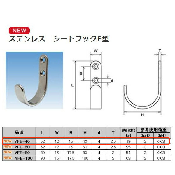水本機械 シートフックE型 ステンレス金具 YFE-40