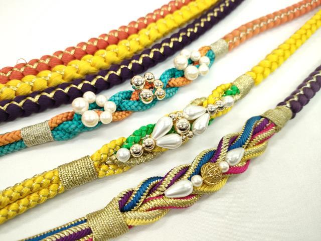 平和屋ç€ç‰©â–¼å’Œè£…å°ç‰©ã€€å¸¯ç· ã‚3本セット 振袖用 飾り付ã パール ビジュー 紫 黄 オレンジ 金糸 逸å“ CABC1131ju