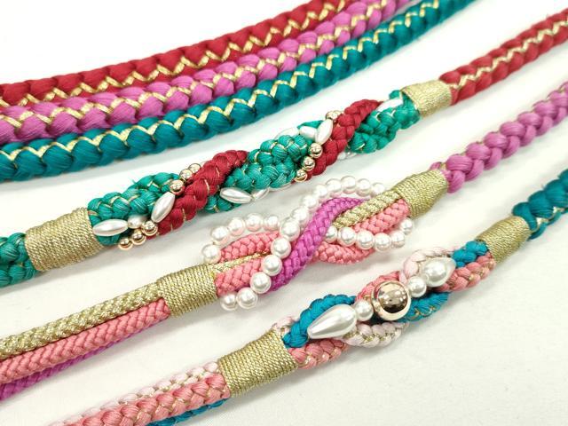 平和屋ç€ç‰©â–¼å’Œè£…å°ç‰©ã€€å¸¯ç· ã‚3本セット 振袖用 飾り付ã パール シアン 赤 紅紫色 金糸 逸å“ CABC0835ju