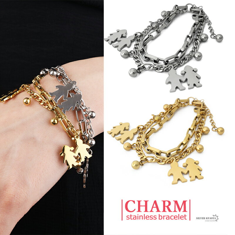 ãƒãƒ£ãƒ¼ãƒ ブレスレット ステンレス ゴールド シルãƒãƒ¼ 2連 é‡ã付㑠ã‚ãšã å°è±† 喜平 ãƒã‚§ãƒ¼ãƒ³ ãƒãƒ£ãƒ¼ãƒ 人形 ボール アジャスター gold silver 金属アレルギー対応