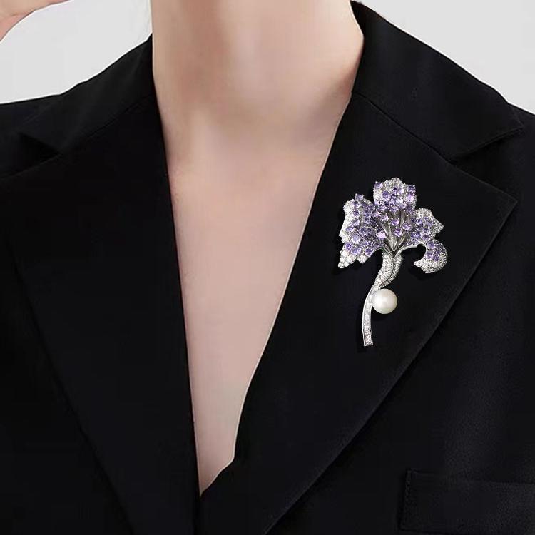 ブãƒãƒ¼ãƒ レディース 女性用 繊細 ä¸Šå“ è±ªè¯ è¯ã‚„ã‹ ãŠã—ゃれ ç´« ユリ パール ジルコニア 花 コサージュ ピン スーツ コート アウター フォーマル カジュアル マルãƒãƒ¦ãƒ¼ã‚¹ アクセサリー