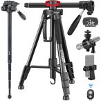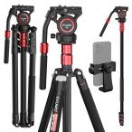 EVUMO GF4 カメラ三脚 フルードビデオ雲å°ä»˜ãã€200cmアルミニウムåˆé‡‘ ビデオ 三脚 一脚 スマホホルダー付ã 一眼レフã€ãƒ“デオカメラã«ã€
