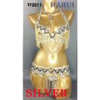 ベリーダンス 衣装 ブラ ベルト パール ã—ãšã 上下2点 セット シルãƒãƒ¼