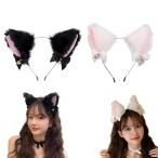 (QIKEJI) 猫耳 ã‚«ãƒãƒ¥ãƒ¼ã‚·ãƒ£ ãã“ã¿ã¿ 2色セット 鈴付ã リボン付ã ãµã‚ãµã‚ ãƒãƒã‚¦ã‚£ãƒ³ é»’