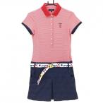 ã‚ャãƒã‚¦ã‚§ã‚¤ åŠè¢–ãƒãƒãƒ¯ãƒ³ãƒ”ース レッド×ãƒã‚¤ãƒ“ー 上部ボーダー ベルト付 レディース M ゴルフウェア Callaway