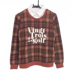 23区ゴルフ 襟付トレーナー レッド×白 ãƒã‚§ãƒƒã‚¯ 微起毛 襟ç€è„±å¯ レディース I(M) ゴルフウェア 23区