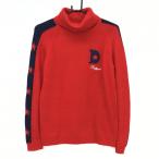 デルソル タートルãƒãƒƒã‚¯ã‚»ãƒ¼ã‚¿ãƒ¼ レッド×ãƒã‚¤ãƒ“ー 袖星ライン アンゴラ混 ニット レディース L ゴルフウェア DELSOL