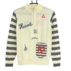 ルコック ãƒã‚¤ãƒãƒƒã‚¯ã‚»ãƒ¼ã‚¿ãƒ¼ アイボリー×グレー 袖ボーダー ãƒãƒ¼ãƒ•ジップ ニット ウール混 レディース M ゴルフウェア le coq sportif
