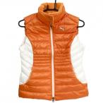 プーマ ダウンベスト オレンジ×白 æ ¼å織生地 ãƒã‚´åˆºã—ゅㆠãƒãƒƒã‚¯å†…å´èµ·æ¯› ダブルジップ レディース M ゴルフウェア PUMA(超美å“)