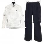 アディダス レインウェア(2WAYジャケット×パンツ) 白×ãƒã‚¤ãƒ“ー ドット 袖ç€è„±å¯ レディース M/M ゴルフウェア adidas