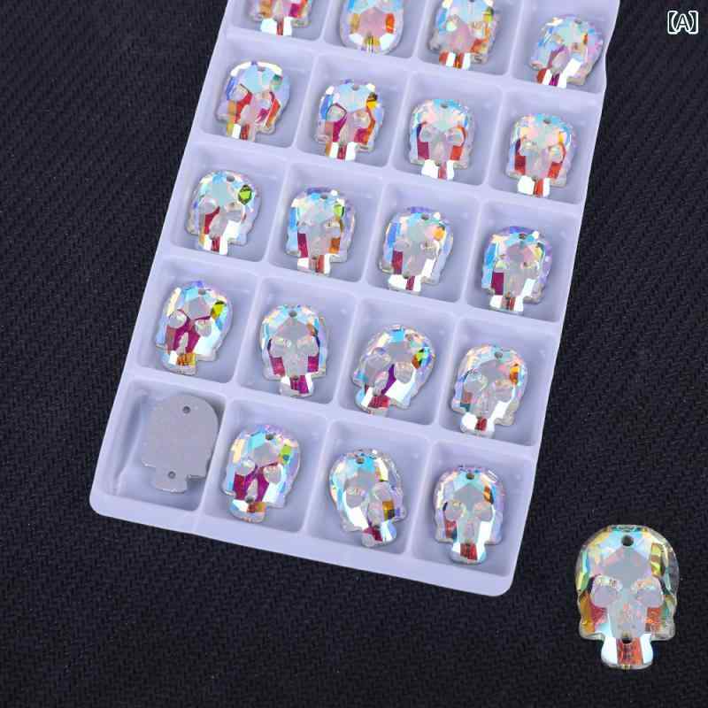 ラインストーン スカル ドクムガラス 手縫ㄠ手芸用 フラットãƒãƒƒã‚¯ 平型 2ç©´ ホワイトAB クリスタル è¼ã DIY ãƒãƒ³ãƒ‰ãƒ¡ã‚¤ãƒ‰ アクセサリーパーツ ビジュー