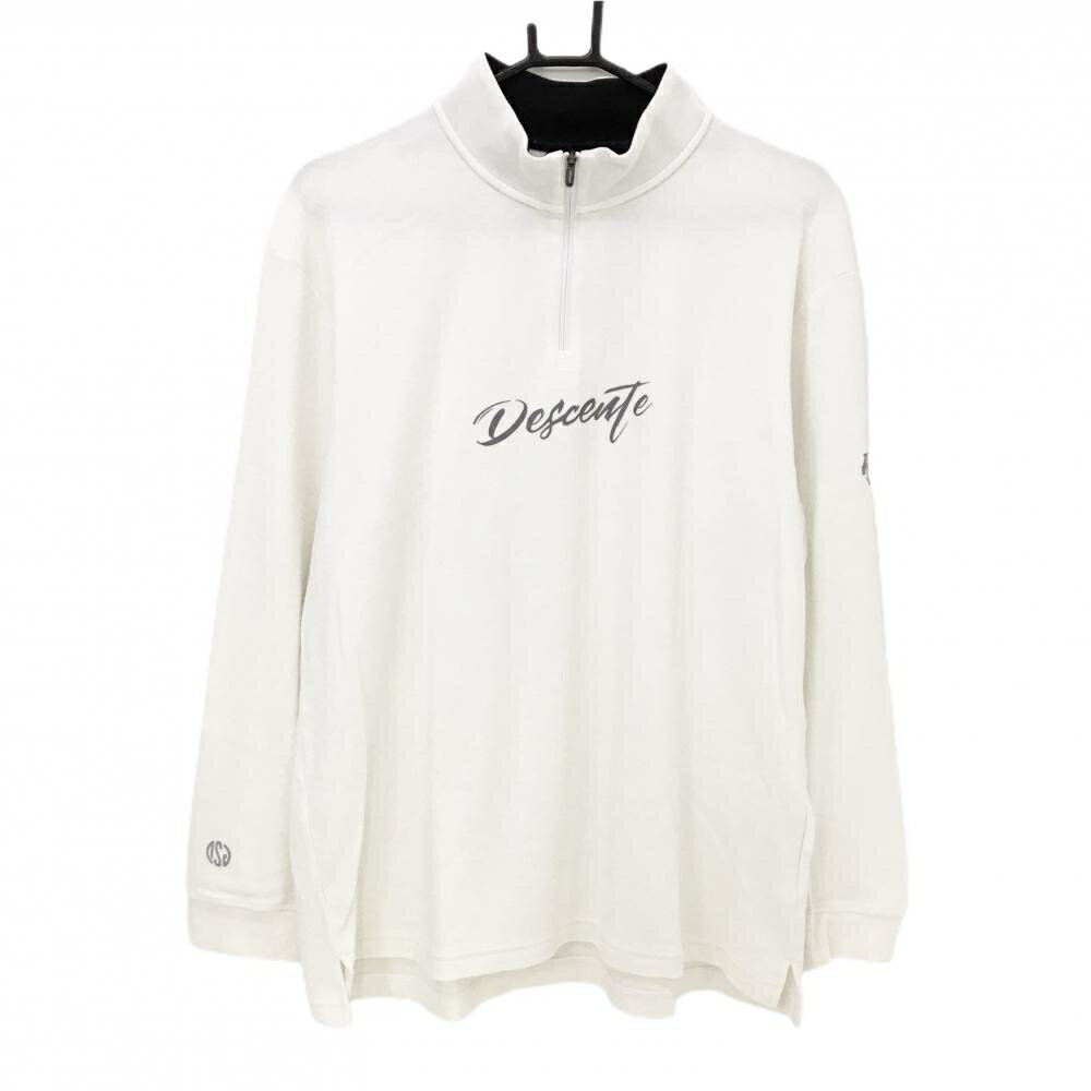 デサントゴルフ 長袖ãƒã‚¤ãƒãƒƒã‚¯ã‚·ãƒ£ãƒ„ 白 フãƒãƒ³ãƒˆãƒã‚´ã‚°ãƒ¬ãƒ¼ ãƒãƒ¼ãƒ•ジップ ä¸ç”°è‹±å¯¿ メンズ O ゴルフウェア DESCENTE