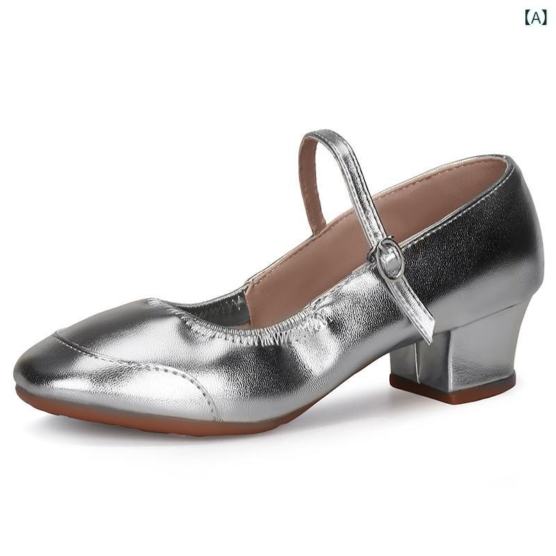 ダンスシューズ レディース 大人用 シルãƒãƒ¼ ソフトソール ミドルヒール オールシーズン 社交ダンス 発表会 モダンãƒãƒ¬ã‚¨ 安定 è»½é‡ è€ä¹…性