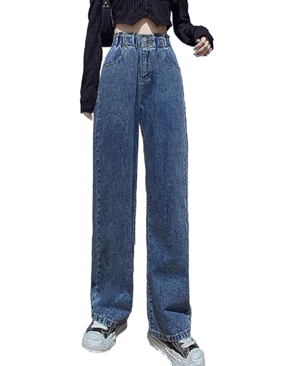 ã€é€æ–™ç„¡æ–™ã€‘[TeMibery Lyric] デニムレディース ジーンズ ãƒãƒ³ã‚°ãƒ‘ンツ - ワイドパンツ ãƒã‚¤ã‚¦ã‚¨ã‚¹ãƒˆ ズボン ゆã£ãŸã‚Š ã‚¸ãƒ¼ãƒ‘ãƒ³ カジュアル 大ãã„サイズ ãŠã—ゃれ ストレート ãれã„゠体型カãƒãƒ¼ 美脚 坿„›ã„ 無地 ボ 色:ダークブルーã€ã‚µã‚¤ã‚ºï¼šFree Size RegularR