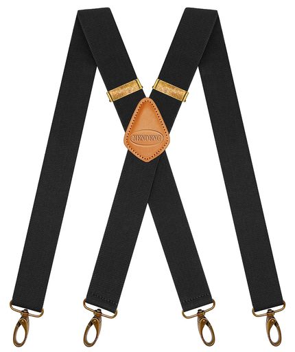 MENDENGメンズサスペンダーX型無地35mmスプリングフックレトãƒãƒ–ラックフォーマル本é©ã—ã£ã‹ã‚Šã¨ãƒ›ãƒ¼ãƒ«ãƒ‰èª¿ç¯€å¯èƒ½4フックåŠã‚Šãƒãƒ³ãƒ‰ã‚«ã‚¸ãƒ¥ã‚¢ãƒ«ãƒ“ジãƒã‚¹
