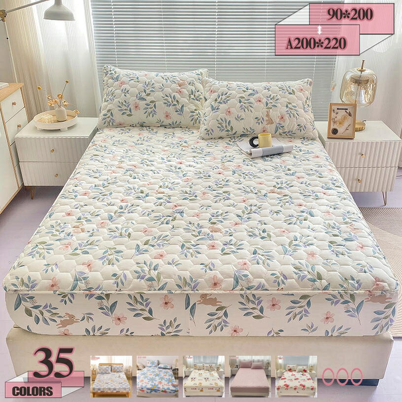ベッドカãƒãƒ¼ シングル セミダブル ダブル クイーン 花柄 斜文織 プリント マットレスä¿è· ãšã‚Œé˜²æ¢ 全周ゴム付ã 防塵