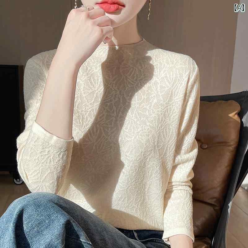レディース ファッション トップス 春 高級感 エレガント ãƒã‚¤ãƒãƒƒã‚¯ カジュアル レイヤリング シャツ シック 彫刻 ニット フェミニン 薄手 長袖