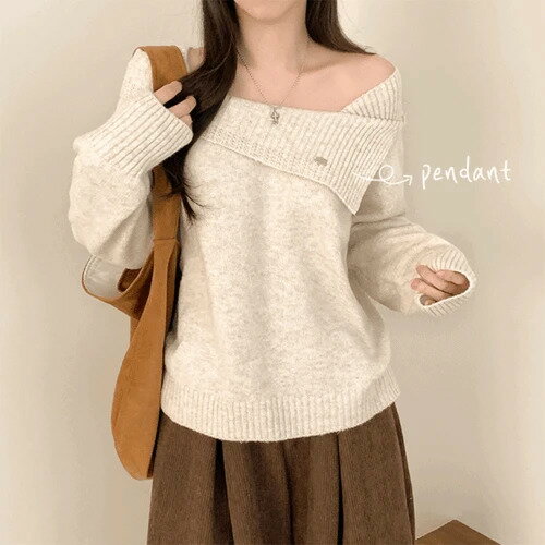 サインペンダントアンãƒãƒ©ãƒ³ã‚¹ã‚ªãƒ•ショルダールーズフィット ウールニット ニット レディース|韓国 peachmode|コーディブック