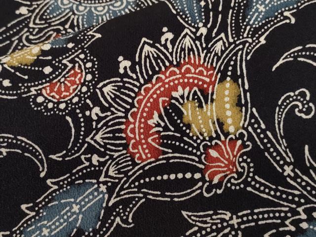 平和屋ç€ç‰©â– 上質ãªå°ç´‹ã€€åž‹æŸ“ã‚ã€€æ›´ç´—èŠ±æ–‡ã€€æšˆã—æŸ“ã‚ 黒地 æ£çµ¹ã€€é€¸å“ CABC0222ev