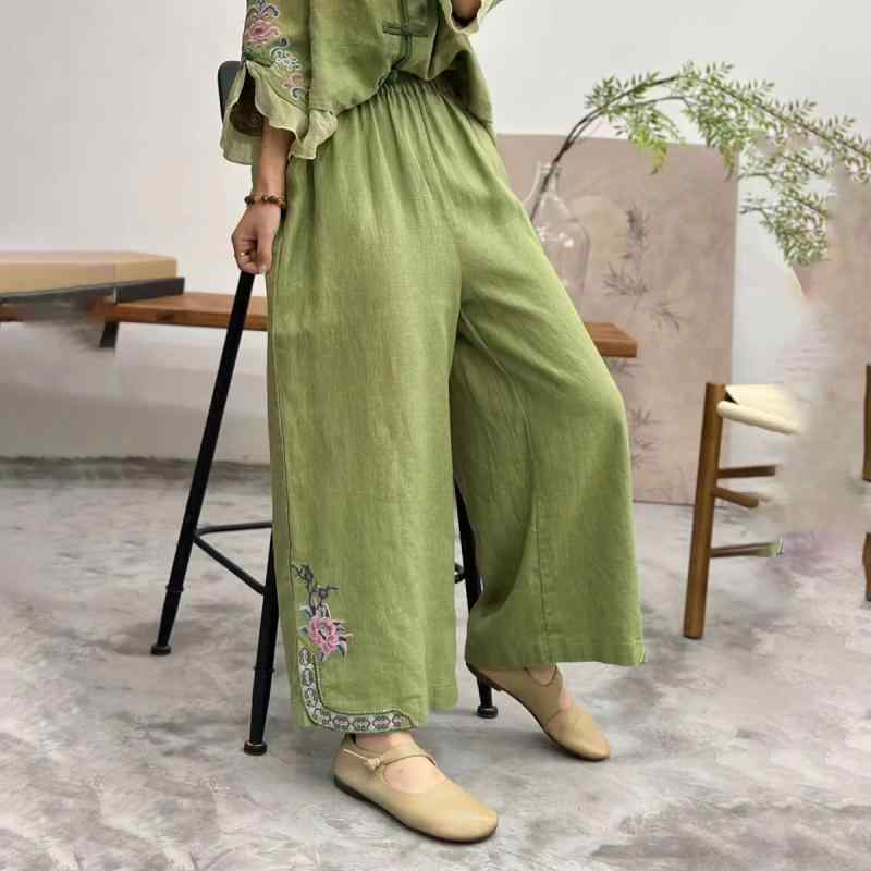 パンツ レディース 綿麻 åˆºç¹ ãƒ¯ã‚¤ãƒ‰ãƒ‘ãƒ³ãƒ„ 9分丈 文芸 レトム花柄 æ°‘æ—風 ゆã£ãŸã‚Š ã‚«ã‚¸ãƒ¥ã‚¢ãƒ« æ˜¥å¤ ãƒ¬ãƒƒãƒ‰ ピンク系 グリーン ãƒã‚¤ãƒ“ー ホワイト ベージュ