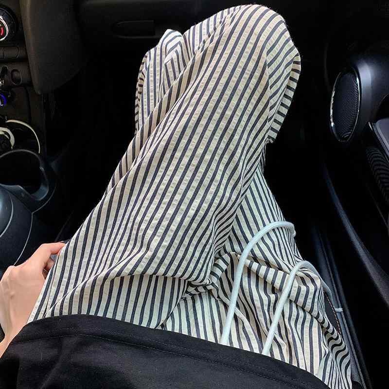 パンツ レディース 大ãã„サイズ ストレートパンツ 白 ストライプ柄 ドãƒãƒ¼ã‚¹ãƒˆãƒªãƒ³ã‚° ゆã£ãŸã‚Š æŽ¥è§¦å†·æ„Ÿ 薄手 リラックスパンツ カジュアル