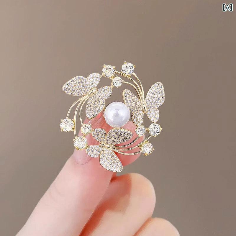 ブãƒãƒ¼ãƒ レディース 女性用 高級感 è¶ ãƒã‚¿ãƒ•ライ èŠ±å† ã‚¨ãƒ¬ã‚¬ãƒ³ãƒˆ ä¸Šå“ ãƒ•ã‚§ãƒŸãƒ‹ãƒ³ 個性的 胸元カãƒãƒ¼ 覗ãè¦‹é˜²æ¢ ã‚³ãƒ¼ãƒˆ ジャケット スーツ フォーマル 通勤 オフィス 普段使ㄠ亜鉛åˆé‡‘ ラインストーン 秋冬