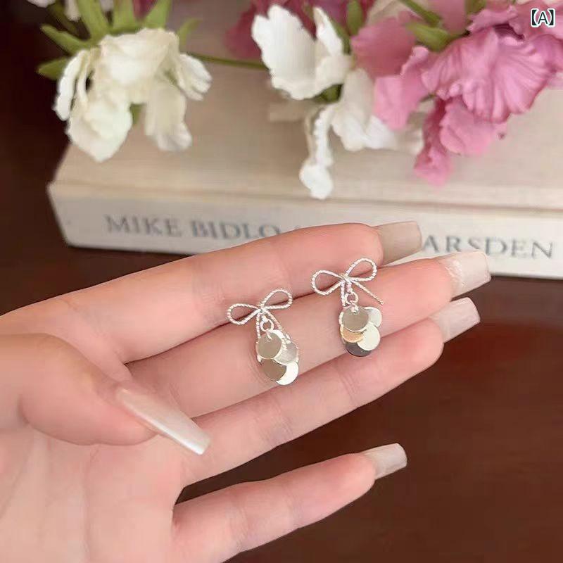 ピアス レディース リボン スパンコール フリンジ スイート フェミニン ライトラグジュアリー 繊細 è¯ã‚„ã‹ ãらãら ãŠã—ゃれ 個性的 万能 普段使ㄠパーティー ãŠå‘¼ã°ã‚Œ åˆé‡‘製 電気メッã‚åŠ å·¥ シルãƒãƒ¼ ゴールド