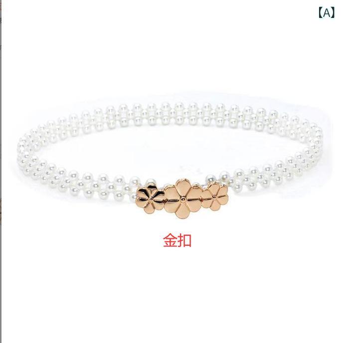 ベルト レディース 伸縮性 パール フラワーモãƒãƒ¼ãƒ• 万能 ウエストマーク 細身 åˆé‡‘ãƒãƒƒã‚¯ãƒ« ä¸Šå“ ãŠã—ゃれ カジュアル フェミニン ワンピース ドレス用 ゴールド シルãƒãƒ¼ 春å¤